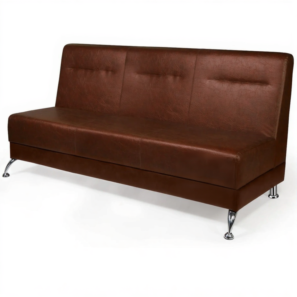 Обивка доступна в различных вариантах искусственной кожи категорий "Эконом", "Стандарт" и "Элит", что дает возможность подобрать идеальное решение, соответствующее вашим предпочтениям и стилю интерьера. Элегантные хромированные опоры добавляют дивану изысканности.