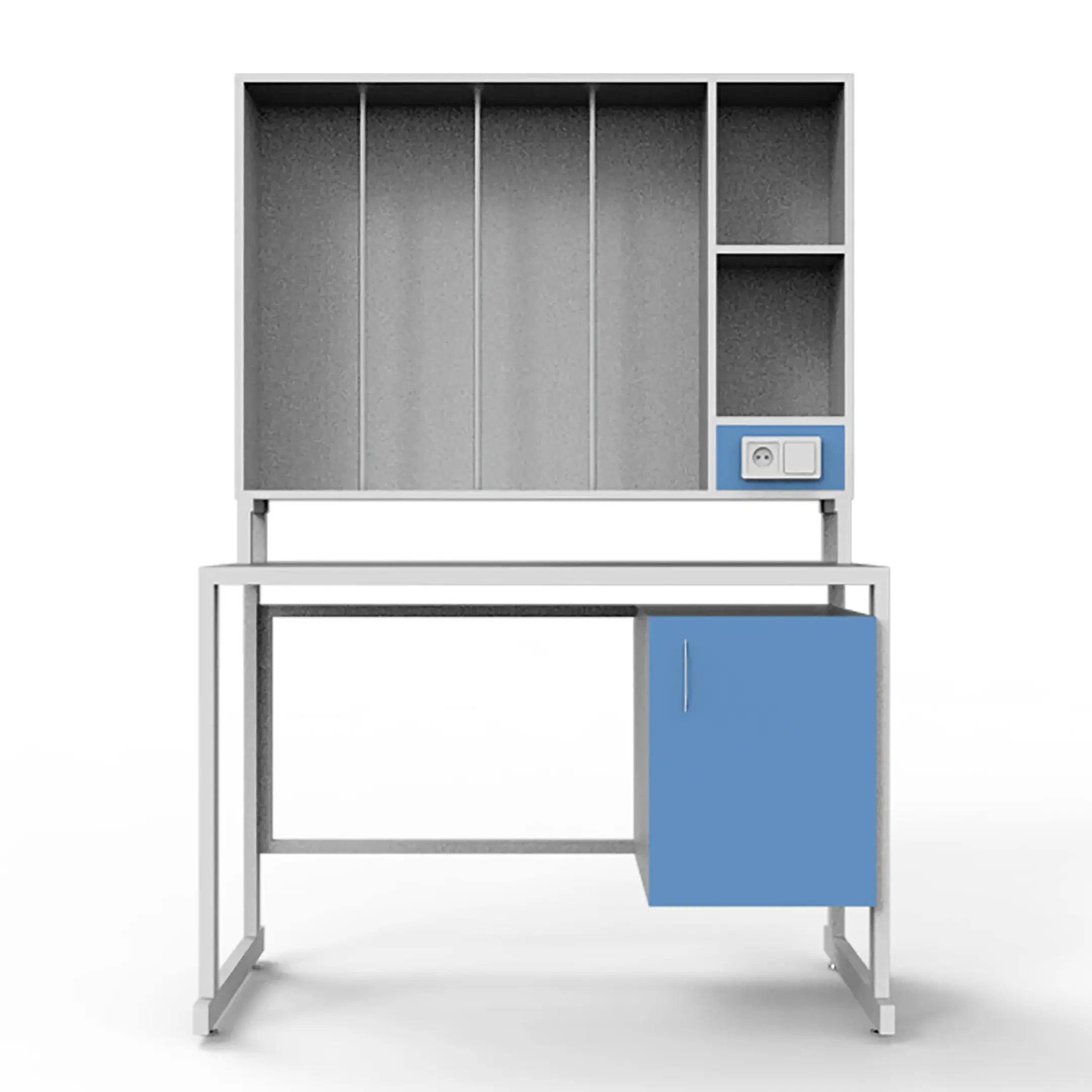 - Удобное хранение — тумба с дверцей для хранения необходимых предметов и образцов.