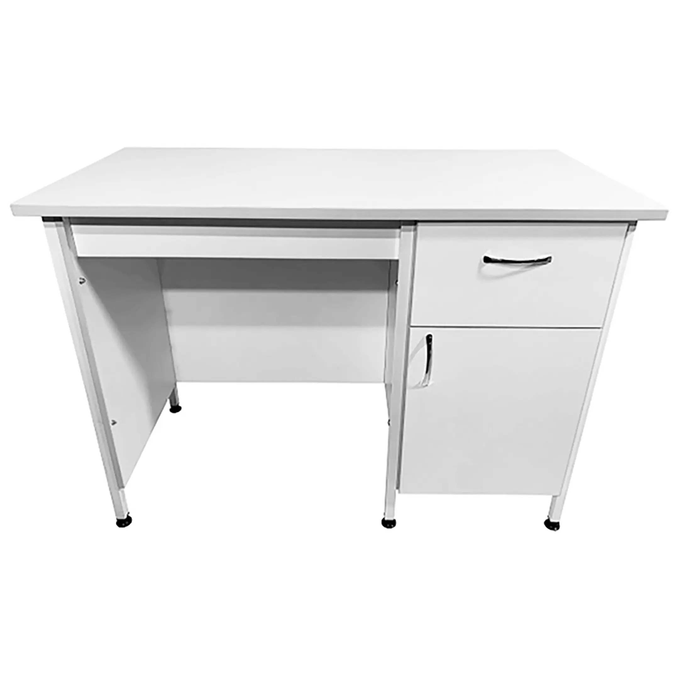 Стол лабораторный СЛ 12.013 (белый) является идеальным решением для организации рабочего места сотрудников в лабораториях и медицинских учреждениях. Модель оснащена тумбой с выдвижным ящиком, распашной дверкой и полкой внутри. Каркас выполнен из стального профиля, столешница из ЛДСП толщиной 22 мм.