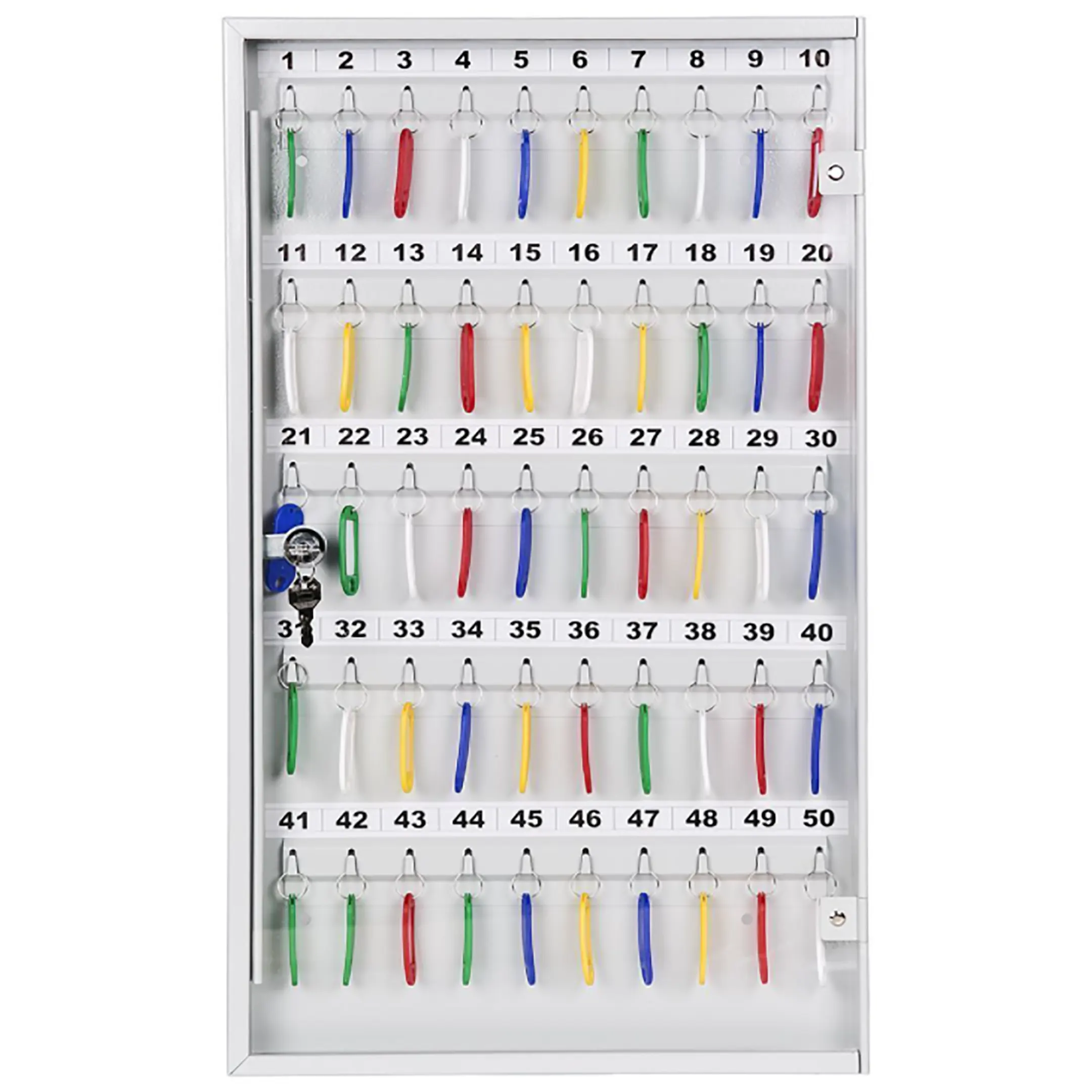 - Надежная защита от пыли и несанкционированного доступа — металлический корпус и запирающаяся дверца защищают ключи от пыли, влаги и кражи. Конструкция обеспечивает физическую сохранность, при этом сохраняя удобство постоянного визуального наблюдения.