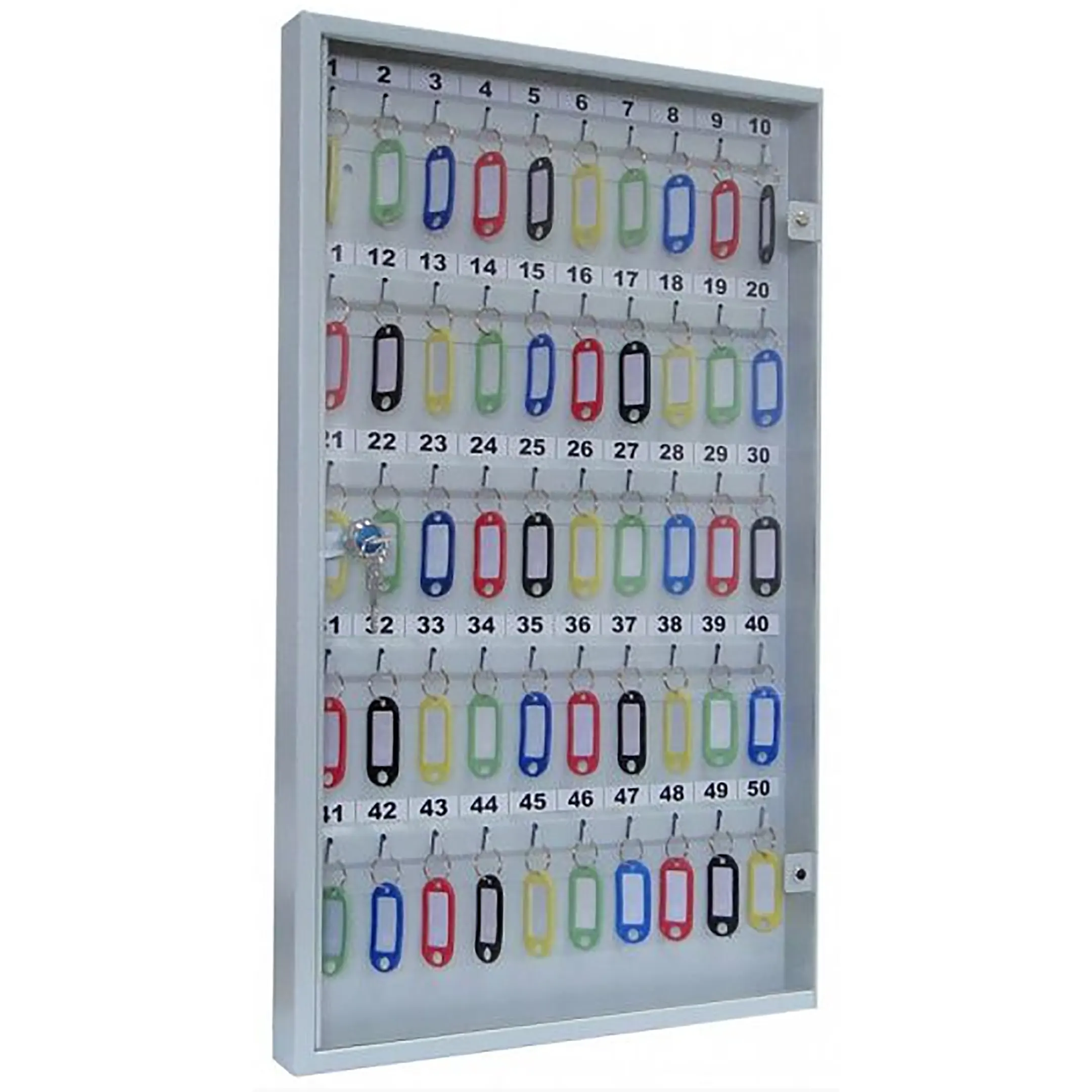 Ключница с прозрачной дверцей КЛС-50 (с брелками) — это практичная и наглядная система для организованного хранения ключей в учреждениях и на предприятиях. Конструкция со стеклянной дверцей и полным комплектом брелков обеспечивает удобный визуальный контроль, быстрый поиск и надежную защиту для 50 комплектов ключей.
