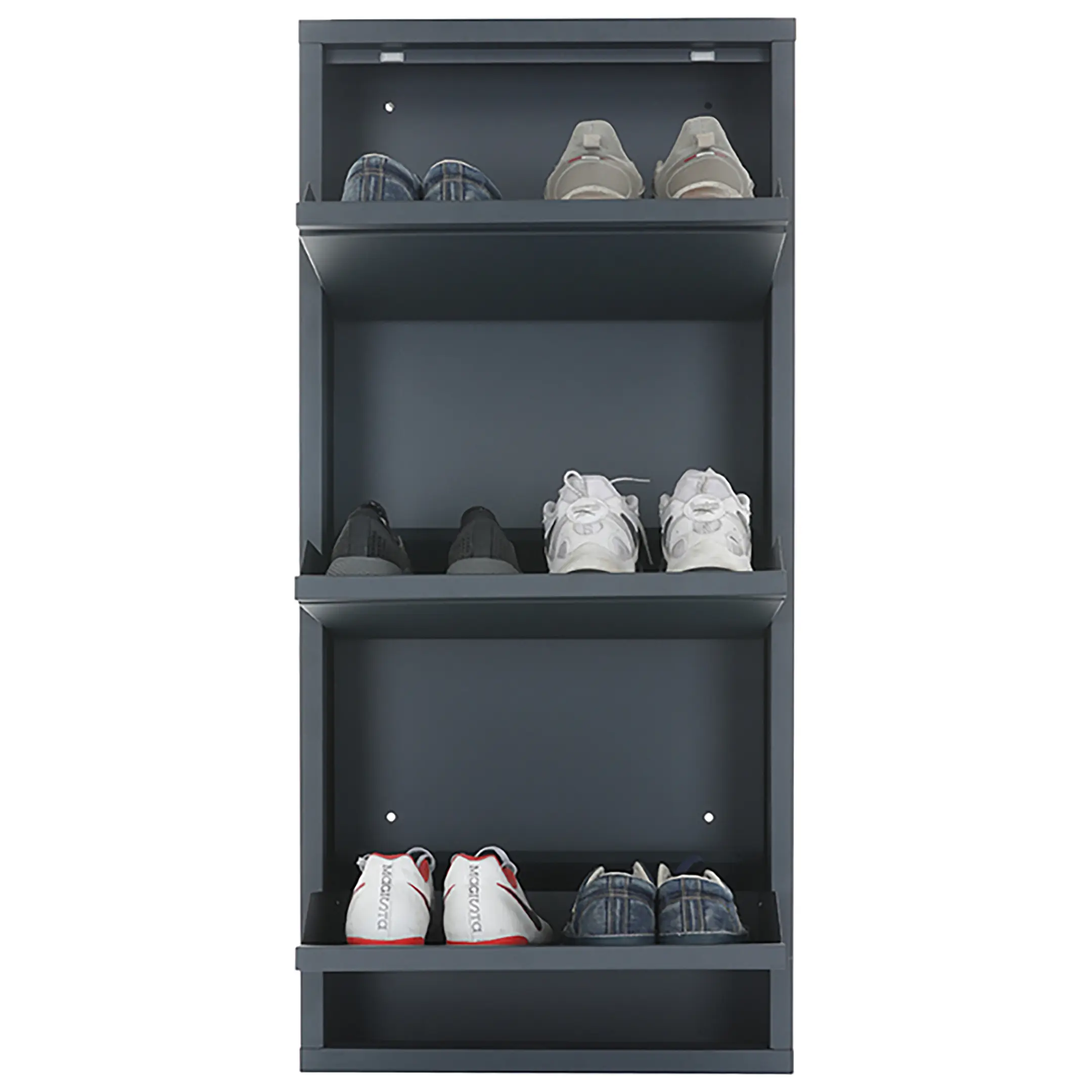 - Открытые полки для быстрого доступа и вентиляции — конструкция обеспечивает моментальный доступ к любой паре обуви и способствует естественной циркуляции воздуха, позволяя обуви проветриваться и сохнуть.