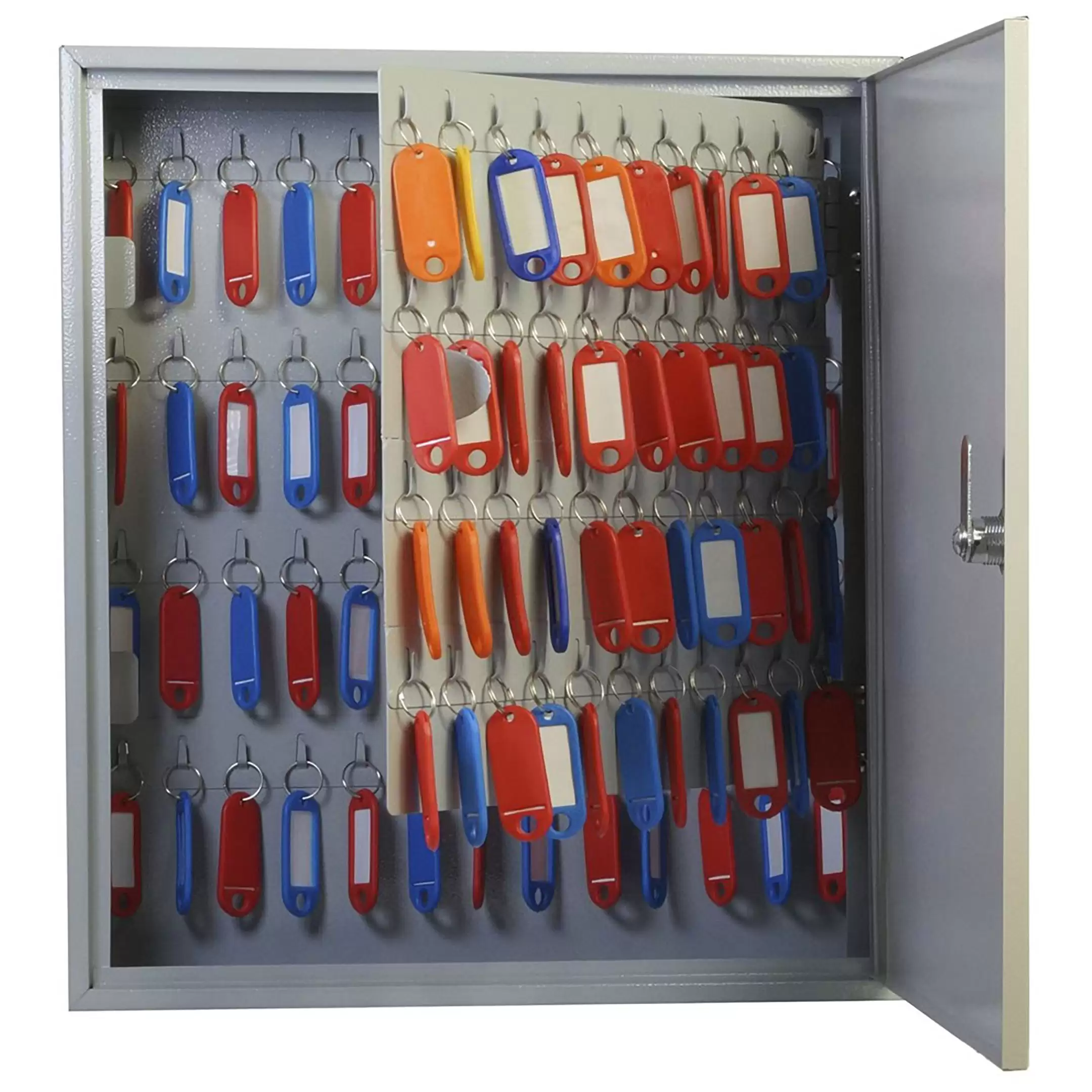 - Четкая система для точного учета и оперативного поиска — девяносто шесть пронумерованных ячеек и комплект соответствующих брелков создают прозрачную и удобную систему. Это позволяет вести детальный журнал учета, мгновенно находить требуемый ключ и однозначно определять ответственность сотрудников за их выдачу и возврат.