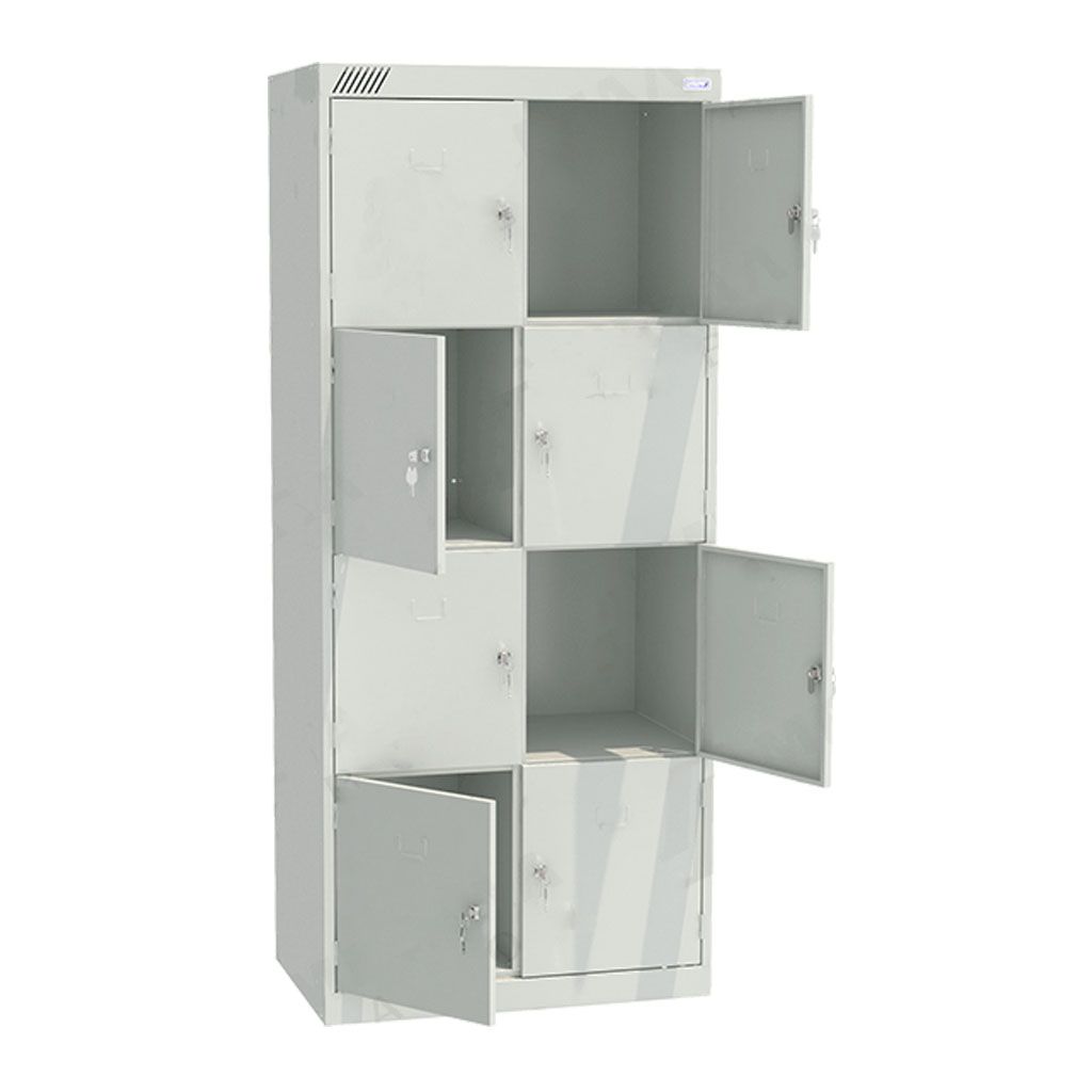 - Вместительная конструкция — две секции и восемь ячеек обеспечивают индивидуальное хранение для нескольких человек.