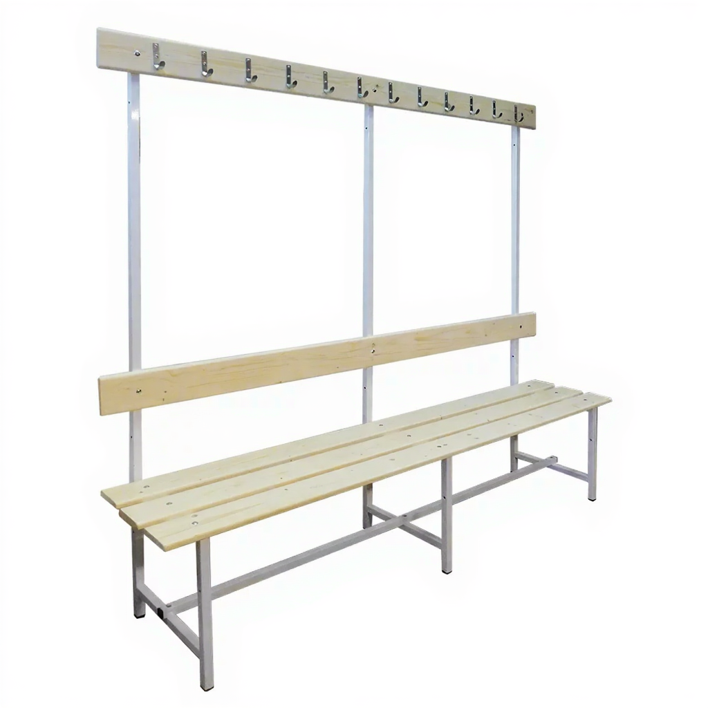 Скамья с вешалкой односторонняя 12 крючков — это надежное и функциональное решение для оборудования раздевалок, вестибюлей, гардеробных комнат в спортивных учреждениях, школах, производственных помещениях и т.п.