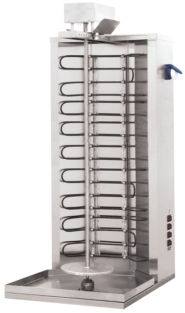 Гриль "Шаурма" МК-2.3ЭП СИКОМ — это профессиональное оборудование для предприятий общественного питания и точек фастфуда, предназначенное для обжарки различных типов и видов мяса на вертеле. Модель оснащена автоматическим приводом, все элементы прибора выполнены из высококачественной пищевой нержавеющей стали.