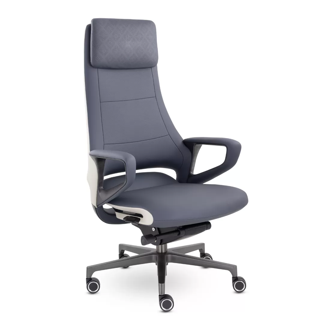 Кресло EPIK A-001-MV 201-235 (темно‑синий/кремовый) — современное кресло руководителя с мягкой обивкой из экокожи и стильным дизайном. Модель сочетает комфорт, функциональные регулировки и прочную конструкцию, что делает её отличным решением для офисных кабинетов, переговорных и рабочих зон.