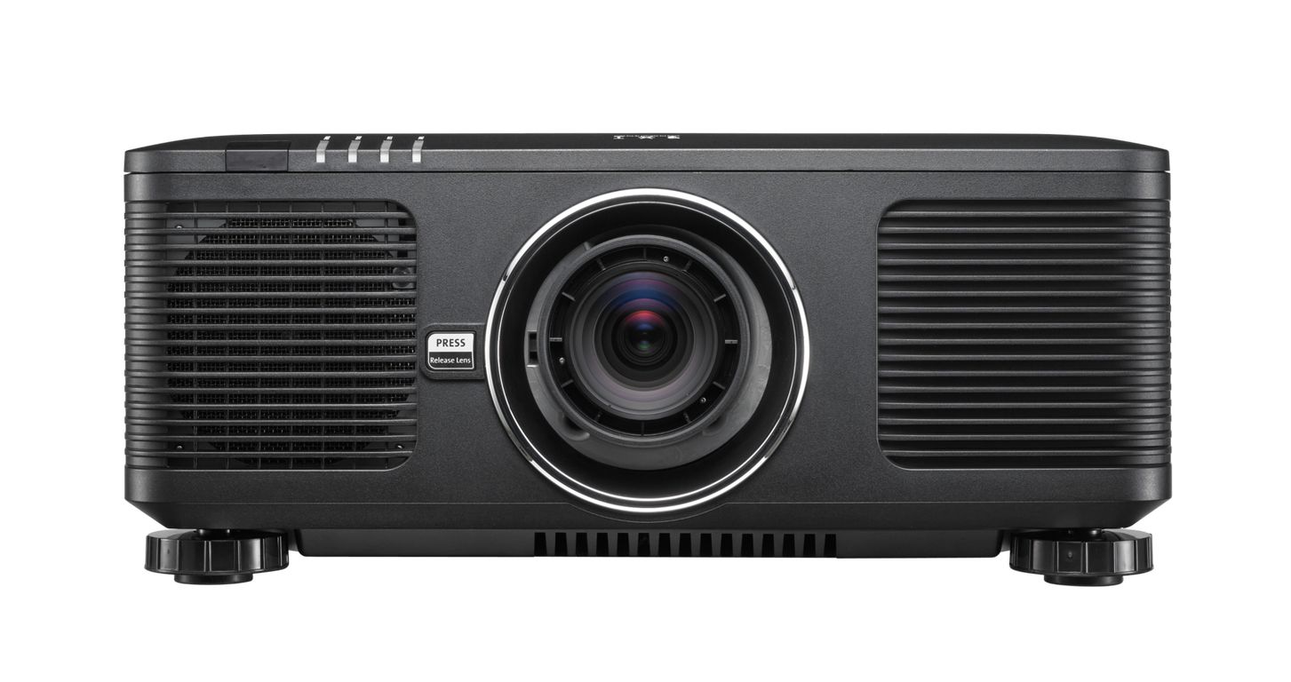 Инсталляционный со съемной оптикой. Технология DLP, Яркость 10 000 ANSI, Разрешение 4K UHD (3840x2160), Контрастность 10 000:1, Источник света Laser, Ресурс источника света 20 000 часов, 8 моторизованных объективов, Интерфейс: HDMI-D,-Port–SDI, HD Base-T, Вес 28 кг, Цвет черный