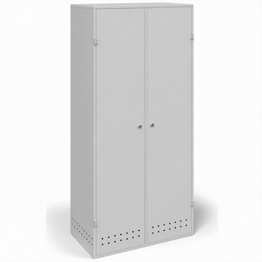 Шкаф для 2-х газовых баллонов ШГБК-028, усиленный — это надежное, компактное и практичное решение для безопасного хранения и защиты пары газовых баллонов на производственных участках, в мастерских, сервисных центрах и на объектах с повышенными требованиями к прочности. Модель представляет собой усиленный стальной защитный шкаф серии «028», где обозначение четко определяет его вместимость на два стандартных баллона. Усиленная конструкция разработана для строгого соблюдения правил пожарной и промышленной безопасности, обеспечивая максимальную защиту емкостей с газом под давлением от внешних воздействий, несанкционированного доступа, краж и механических повреждений.