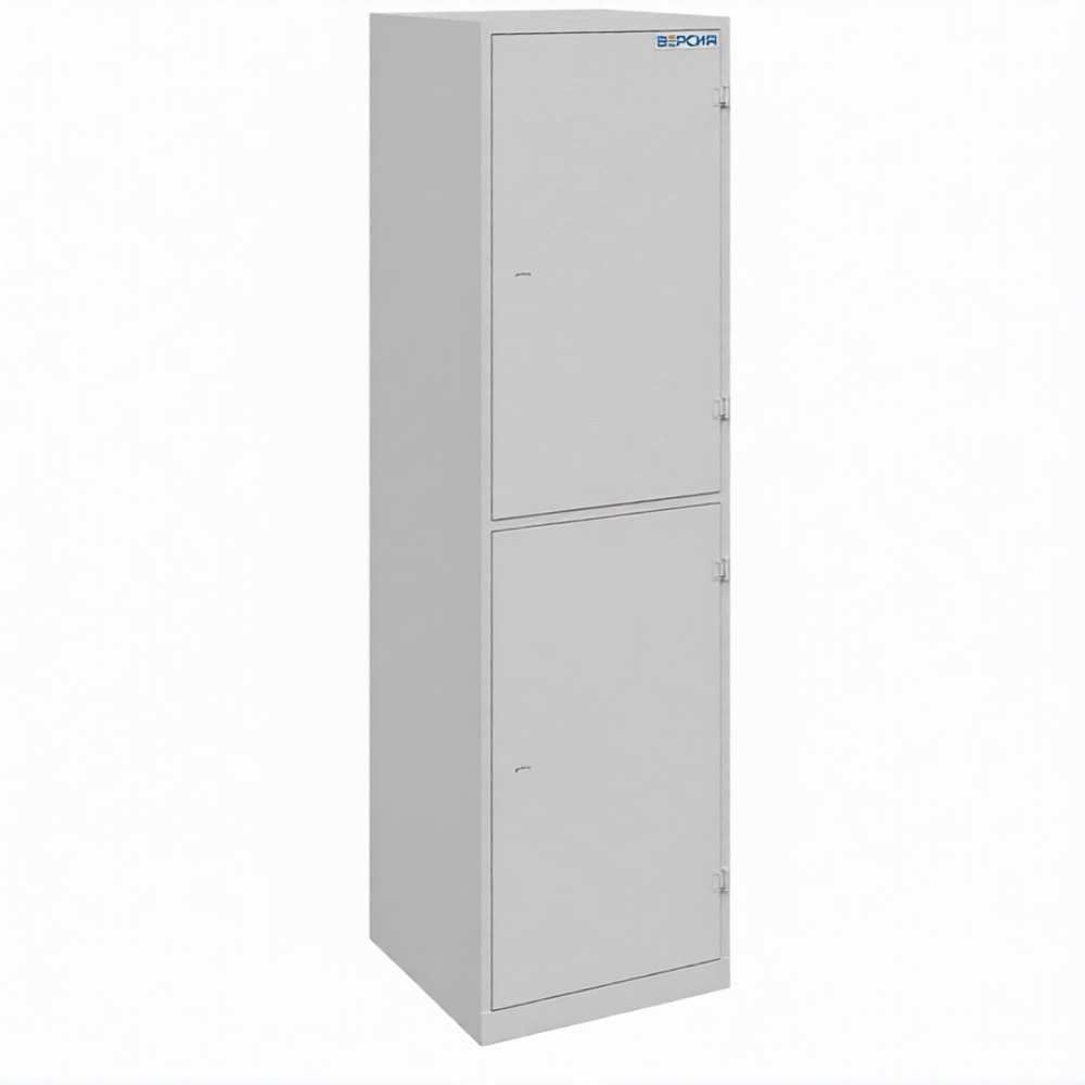 • Шкаф двухдерный с замком - накладной БИФ. Внутри шкафа установлены 2 полки.
