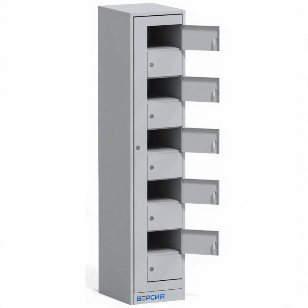 - Компактность и рациональная конструкция — габариты шкафа (1820х380х450 мм) оптимизированы для размещения вдоль стены в коридоре, раздевалке или холле, занимая минимум полезной площади. Вертикальная компоновка ячеек эффективно использует высоту помещения.
