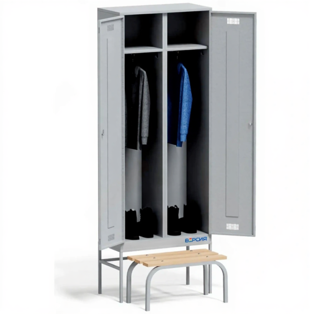Шкаф для одежды металлический ШРВ-П-800-2 со скамьей
