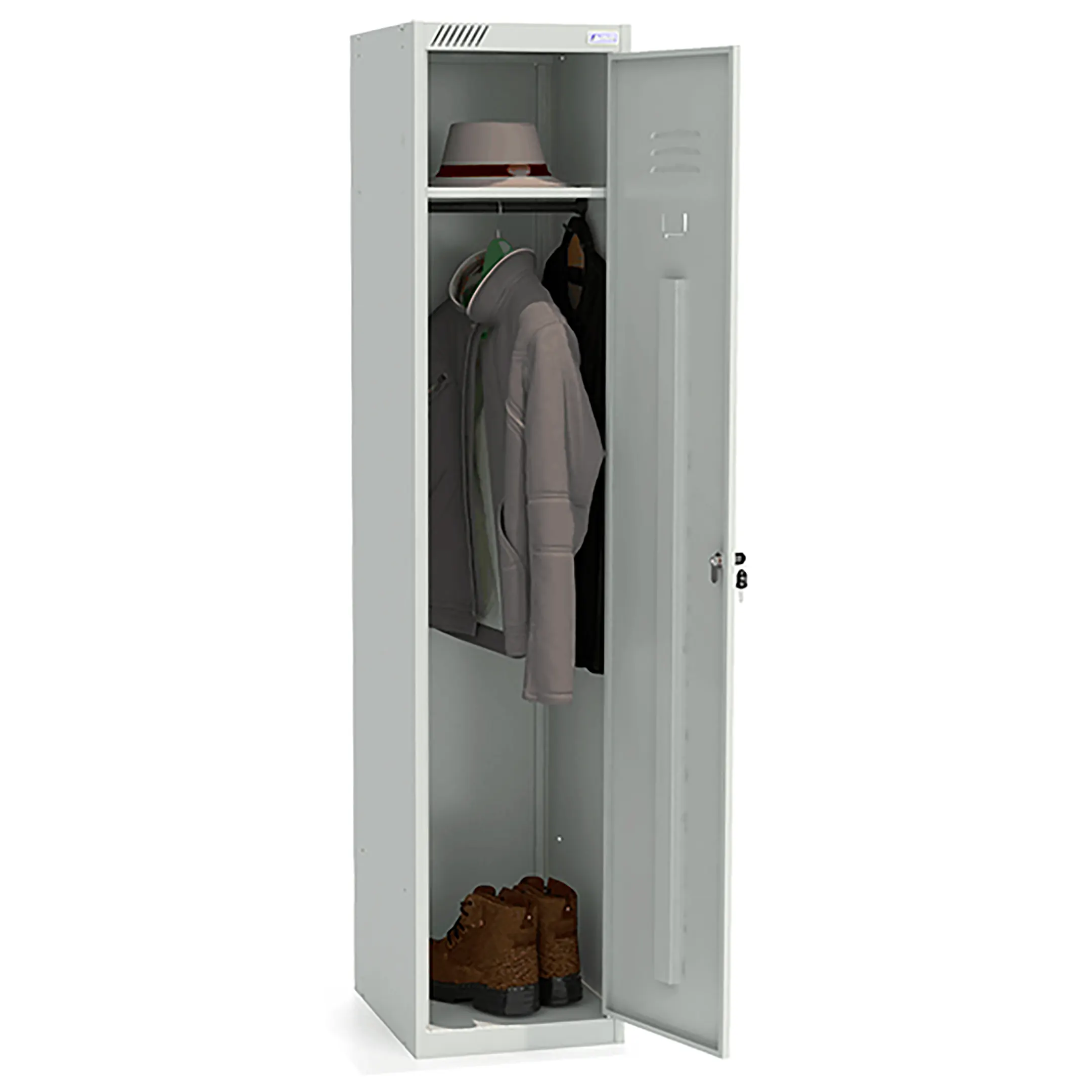 Металлический модульный шкаф для одежды ШРС-11-400 используется для хранения сменной одежды в офисных, производственных, спортивных помещениях.