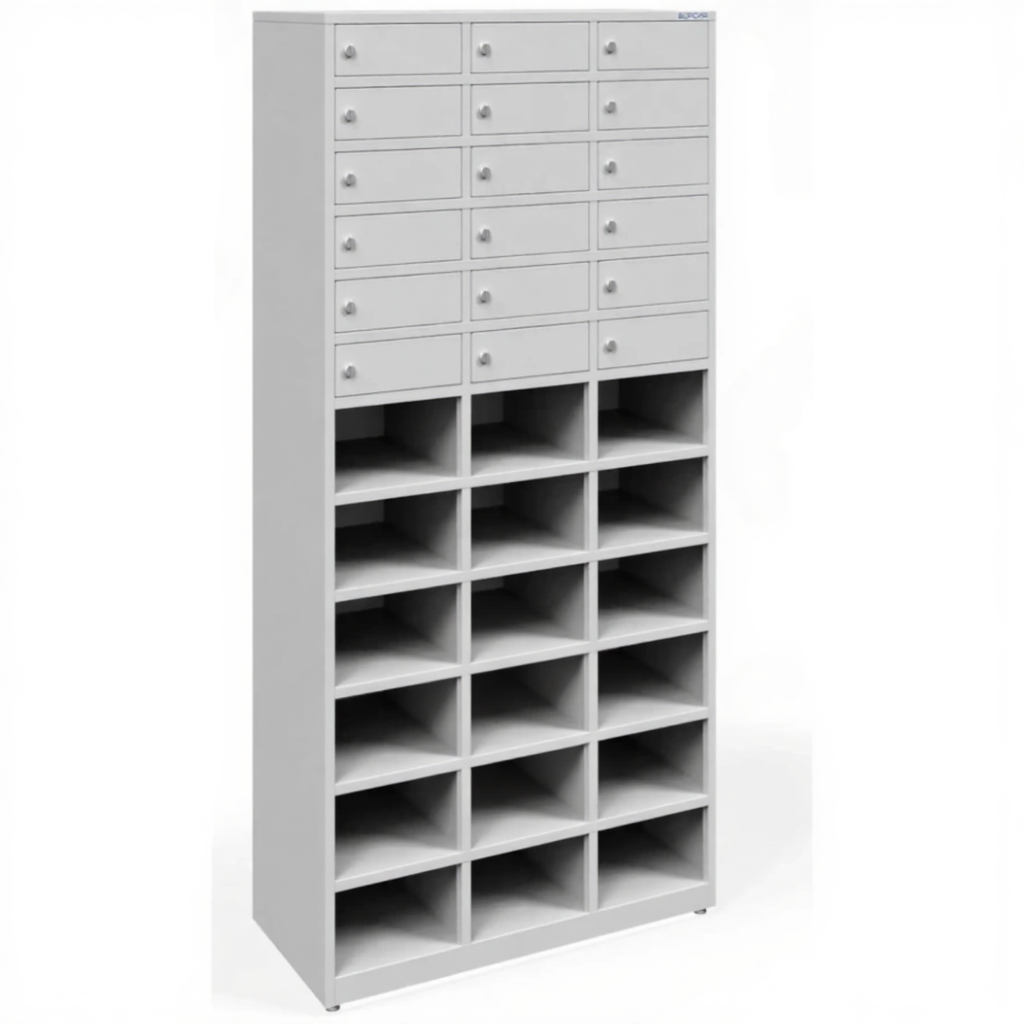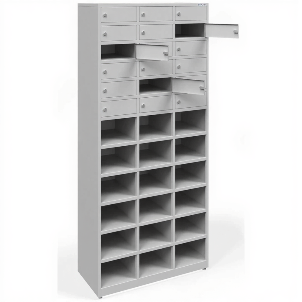 - В офисах, где необходимо разделить хранение для сотрудников разных отделов, работающих в одном помещении.