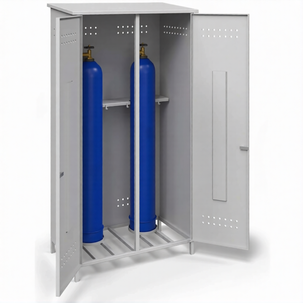 - Обеспечение требований пожарной безопасности — прочный металлический корпус служит барьером, изолирующим баллоны от источников открытого огня, искр и теплового излучения. Обязательная система естественной вентиляции (перфорация или вентиляционные решетки) обеспечивает необходимый воздухообмен для предотвращения накопления газа и образования взрывоопасной концентрации в случае утечки, что строго соответствует нормам ППР.