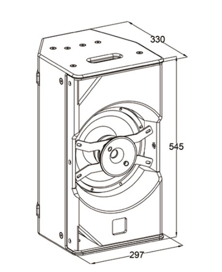 Пассивная полнодиапазонная двухполосная акустическая система; НЧ: 1x10", звуковая катушка 75 мм, ферритовый магнит; ВЧ: 1x1.75“, звуковая катушка 44 мм, неодимовый магнит; Мощность (AES): 400 Вт; Частотный диапазон: 55 Гц - 20 кГц (-10 дБ); Чувствительность: 94 дБ; Макс. SPL: 126 дБ пик; Угол раскрытия (H x V): 80° x 80°, 4 Ом